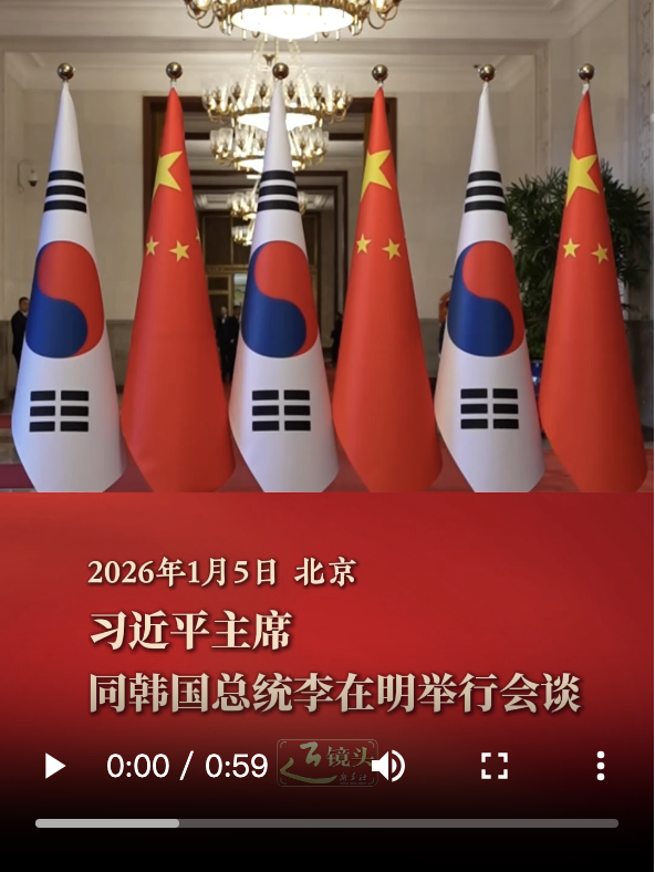 1月5日下午,國(guó)家主席習(xí)近平在北京人民大會(huì)堂同來(lái)華進(jìn)行國(guó)事訪問(wèn)的韓國(guó)總統(tǒng)李在明舉行會(huì)談。去年11月1日,習(xí)近平主席同李在明總統(tǒng)在韓國(guó)慶州舉行會(huì)談。時(shí)隔短短兩個(gè)多月,中韓兩國(guó)元首實(shí)現(xiàn)互訪。