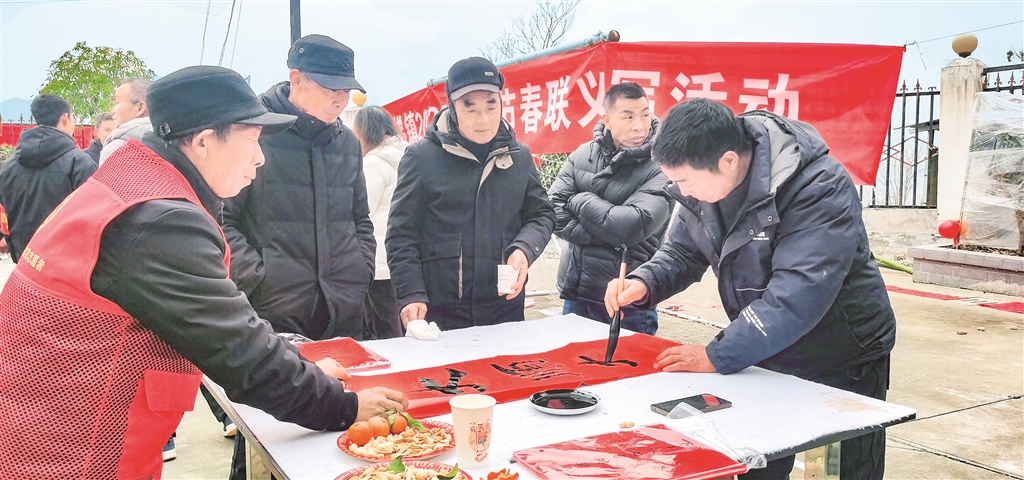 “‘村晚’既注重豐富群眾的文化生活,也著力帶動(dòng)村民增收?!睏羁艽灏?lián)干部、石梯鎮(zhèn)農(nóng)村農(nóng)業(yè)中心主任王化澎介紹了活動(dòng)的初衷?,F(xiàn)場(chǎng)設(shè)置的送春聯(lián)區(qū),書法愛好者揮毫潑墨,一副副對(duì)聯(lián)、一個(gè)個(gè)“福”字被村民欣喜接過;就業(yè)推薦區(qū)前,大家認(rèn)真查看《漢濱區(qū)2026年用工單位招聘崗位需求表》,挑選心儀崗位;農(nóng)副產(chǎn)品展銷區(qū),農(nóng)家自產(chǎn)的紅薯、蔬菜,自制的豆腐乳、醪糟、變蛋等,吸引了眾多來自安康中心城區(qū)的市民爭(zhēng)相搶購。