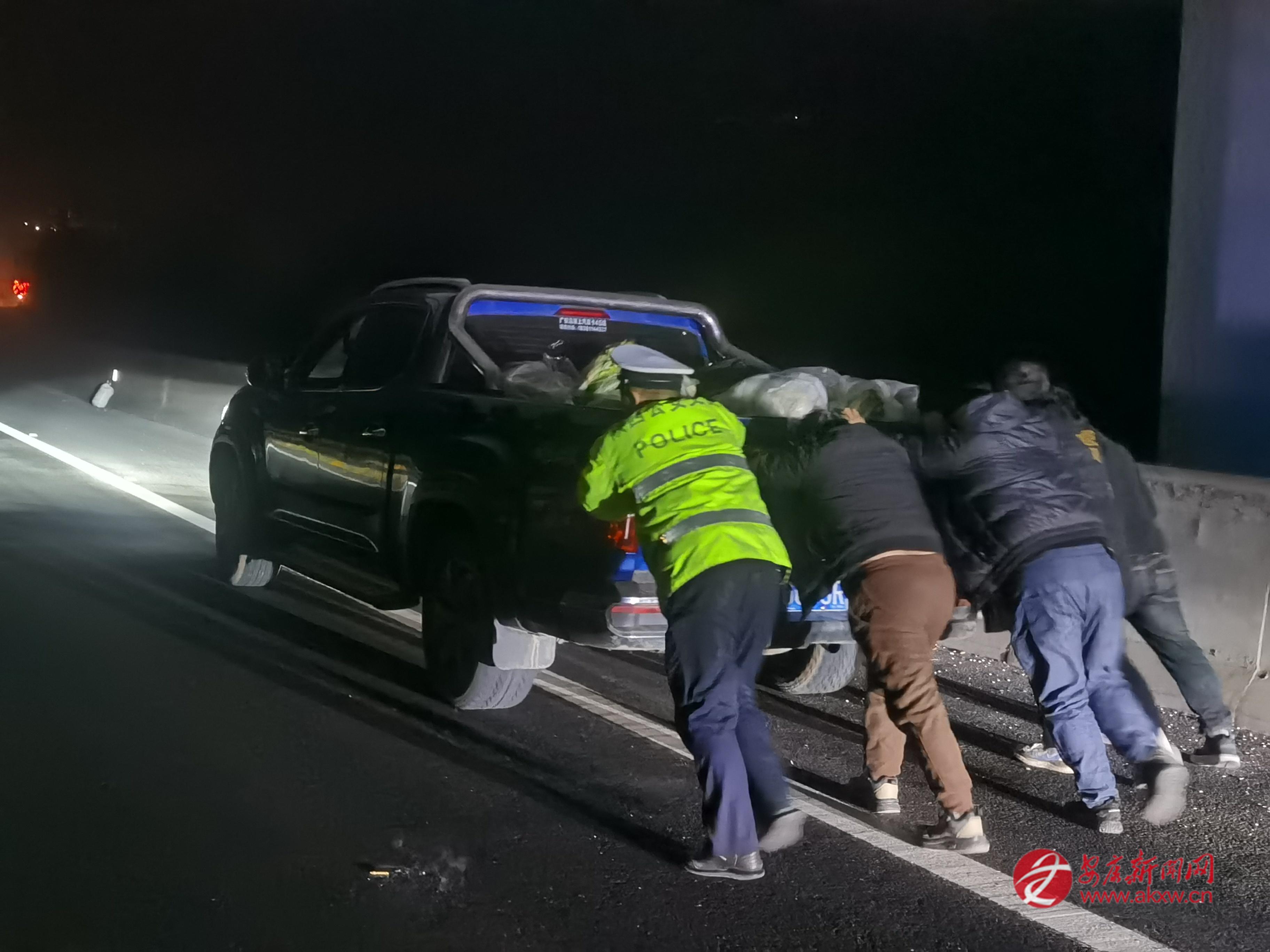 春運路上的安全守護:安十執(zhí)勤大隊深夜徒手推車排險保暢通