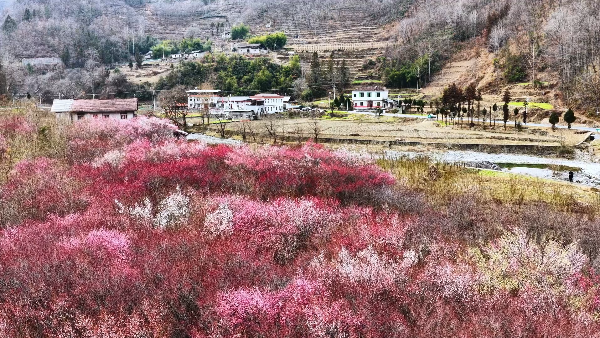 立春以來,鎮(zhèn)坪縣曙坪鎮(zhèn)和平村梅林迎來盛花期,各色梅花競相吐蕊、繁花滿枝,成為鎮(zhèn)坪初春賞景、拍照打卡目的地。姚登 攝