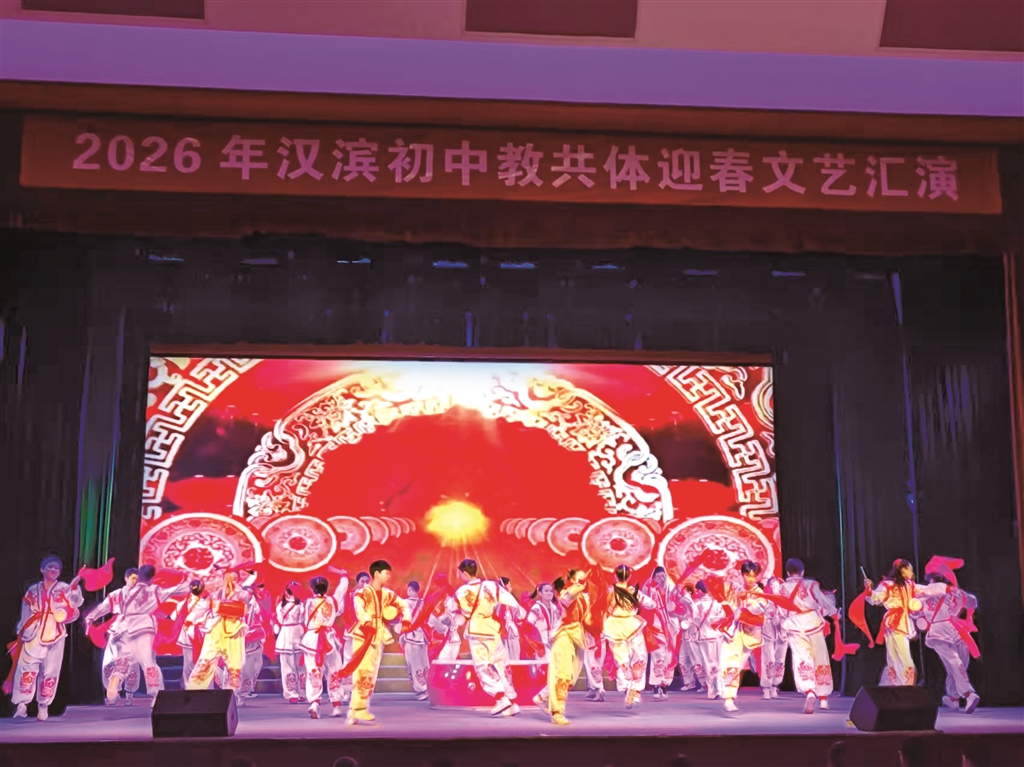 2月4日,漢濱初中教育共同體舉辦“同心筑夢(mèng)傳薪火·和美共生向未來(lái)”迎春文藝匯演。演出分為“薪火相傳”“融合共進(jìn)”“夢(mèng)想綻放”三大篇章,通過(guò)舞蹈、朗誦、非遺展示、音樂(lè)快板等豐富形式,生動(dòng)展現(xiàn)了教育的初心使命與育人成果。 朱合玲 攝