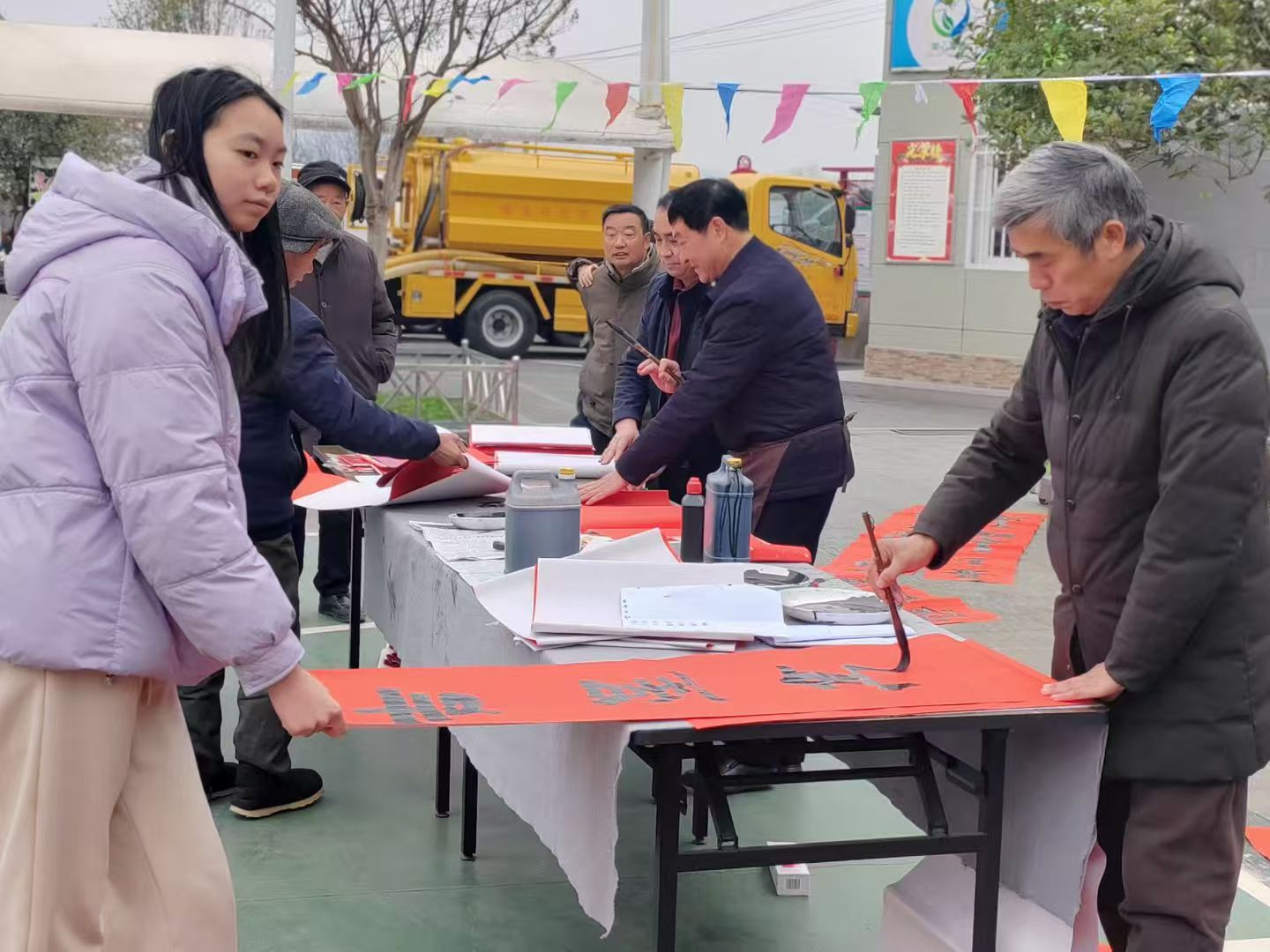 “村晚”現(xiàn)場還設(shè)置了新春惠民服務(wù)區(qū),成為一道溫暖的風(fēng)景線。鎮(zhèn)文化站邀請本土?xí)椰F(xiàn)場揮毫潑墨,免費(fèi)為村民書寫春聯(lián)和福字,墨香四溢,紅紙映春,村民們有序排隊(duì)領(lǐng)取,把新春祝福帶回家。鄉(xiāng)村年貨展銷區(qū)人氣高漲,漢陰富硒糧油、土蜂蜜、臘肉、豆腐干等特色農(nóng)產(chǎn)品整齊擺放,駐村第一書記、村“兩委”干部化身“推銷員”,熱情推介本土好物,既方便村民置辦年貨,又拓寬農(nóng)產(chǎn)品銷售渠道,讓“村晚”既有文化味,更有煙火氣與增收實(shí)效。