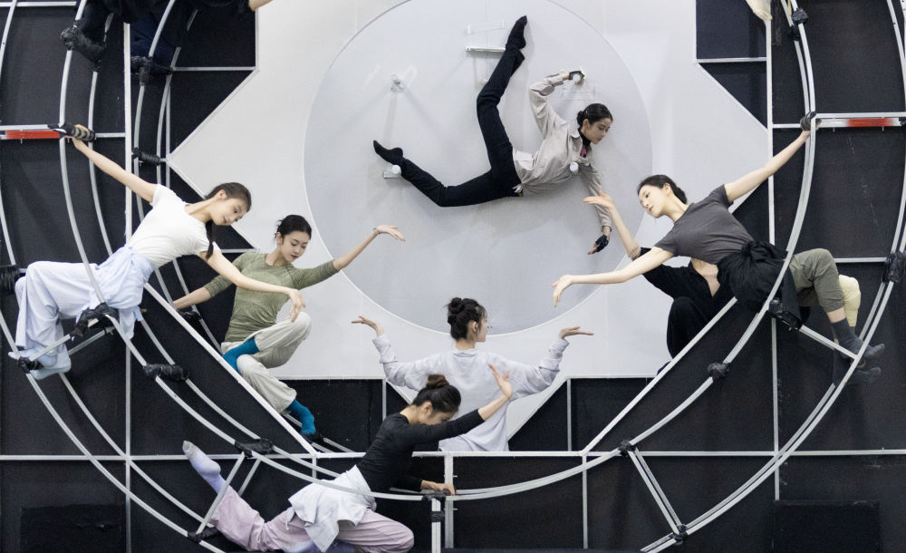 這是舞劇《永樂(lè)未央》中《璇璣萬(wàn)象》段落的排練現(xiàn)場(chǎng)(2025年7月16日攝)。