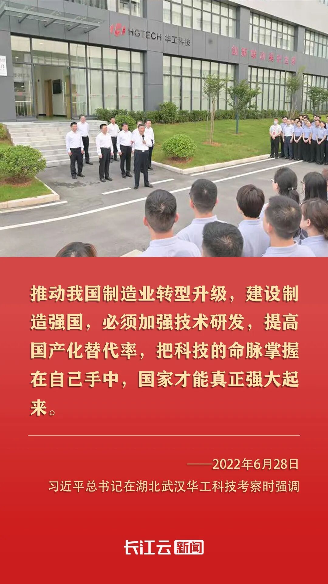 2022年6月,習(xí)近平總書記來(lái)到湖北武漢考察,第一站就來(lái)到光谷,來(lái)到華工科技。他指出,湖北武漢東湖新技術(shù)開發(fā)區(qū)在光電子信息產(chǎn)業(yè)領(lǐng)域獨(dú)樹一幟。要加強(qiáng)技術(shù)研發(fā)攻關(guān),掌握更多具有自主知識(shí)產(chǎn)權(quán)的核心技術(shù),不斷延伸創(chuàng)新鏈、完善產(chǎn)業(yè)鏈,為推動(dòng)我國(guó)光電子信息產(chǎn)業(yè)加快發(fā)展作出更大貢獻(xiàn)。