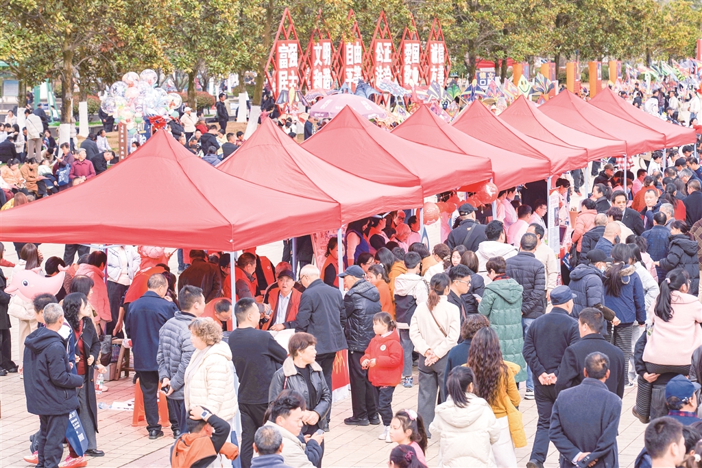 2月20日(農(nóng)歷正月初四)至3月3日(農(nóng)歷正月十五),漢濱區(qū)以“歡樂祥和過大年,文明新風潤漢濱”為主題,在安康中心城區(qū)金州廣場開展春節(jié)移風易俗系列活動?;顒右曰菝裎乃囇莩鰹榧~帶,同步打造新風市集與年貨市集,將政策宣講、志愿服務、助農(nóng)惠民等內(nèi)容有機串聯(lián)。群眾在逛市集、備年貨、看演出的熱鬧氛圍中,近距離感受文明魅力,讓移風易俗理念在歡聲笑語中深入人心。