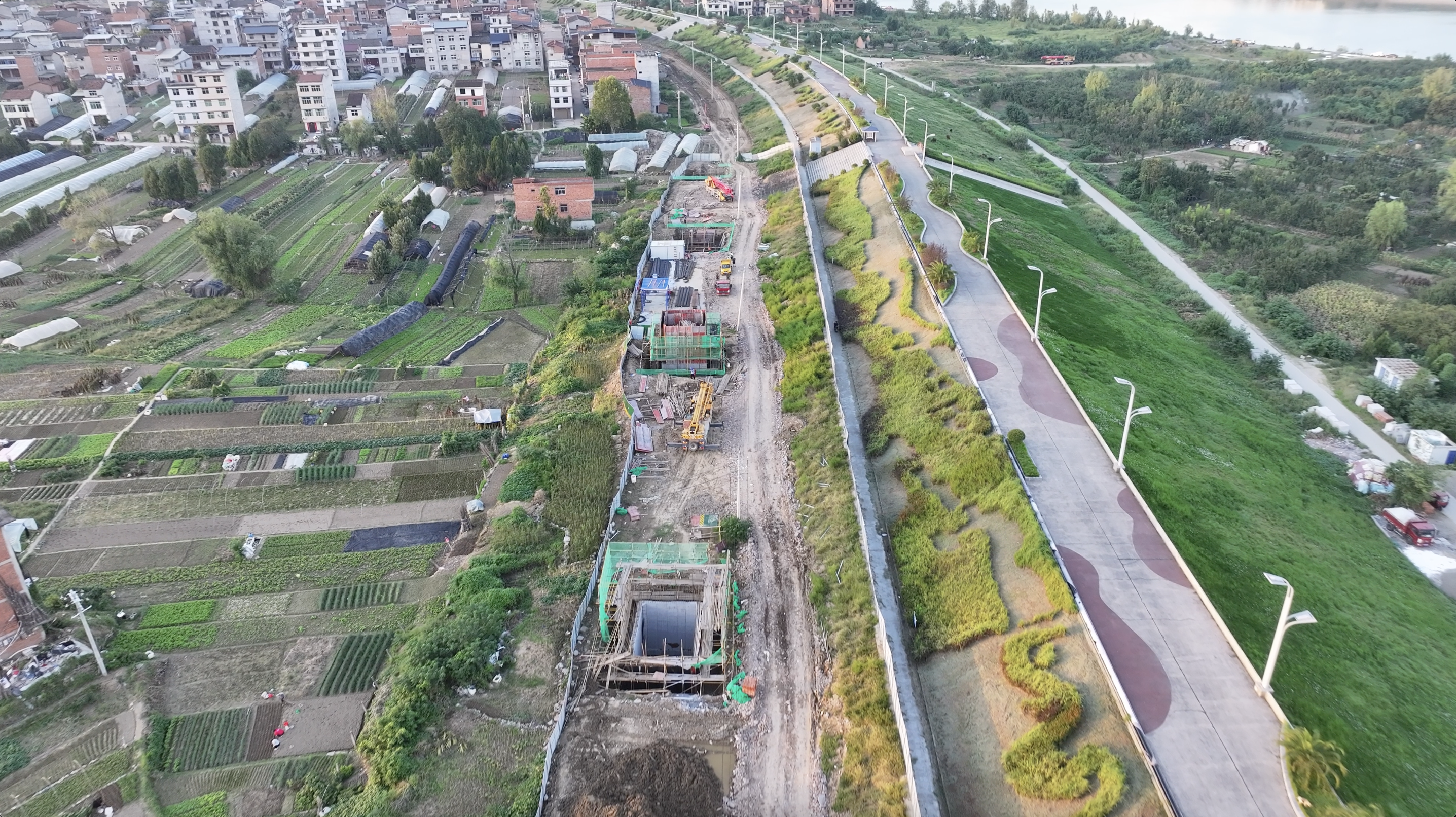 當前,各關(guān)鍵節(jié)點工程穩(wěn)步推進。寇家溝片區(qū)已完成污水管道2600米、擋墻475米、箱涵10米、道路破除及恢復(fù)5200平方米、箱涵清淤270米;東壩白廟片區(qū)污水管道全線貫通,新建單日消納3300立方米污水提升泵站1座,雨水頂管施工完成100米、明開挖完成150米。