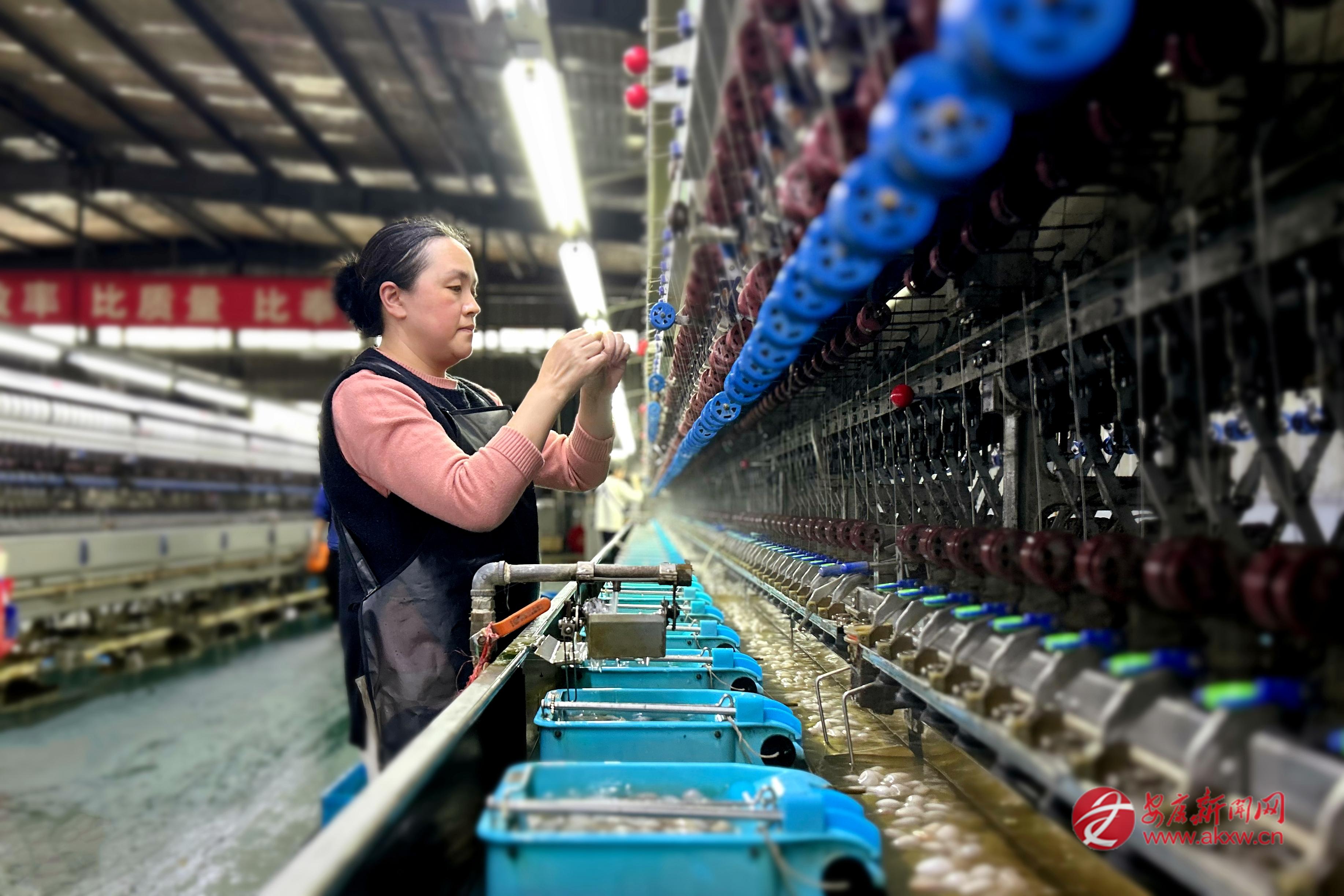 “今年國內(nèi)高端家紡市場需求旺盛,訂單一直很充足?!逼髽I(yè)負(fù)責(zé)人孫浩勇介紹,依托本地優(yōu)質(zhì)蠶繭,企業(yè)滿負(fù)荷生產(chǎn)。同時,通過“企業(yè)+合作社+農(nóng)戶”利益聯(lián)結(jié)機(jī)制,天成絲業(yè)與數(shù)千戶蠶農(nóng)簽訂保底收購協(xié)議,提供全流程服務(wù),實(shí)現(xiàn)企業(yè)增效、蠶農(nóng)增收。