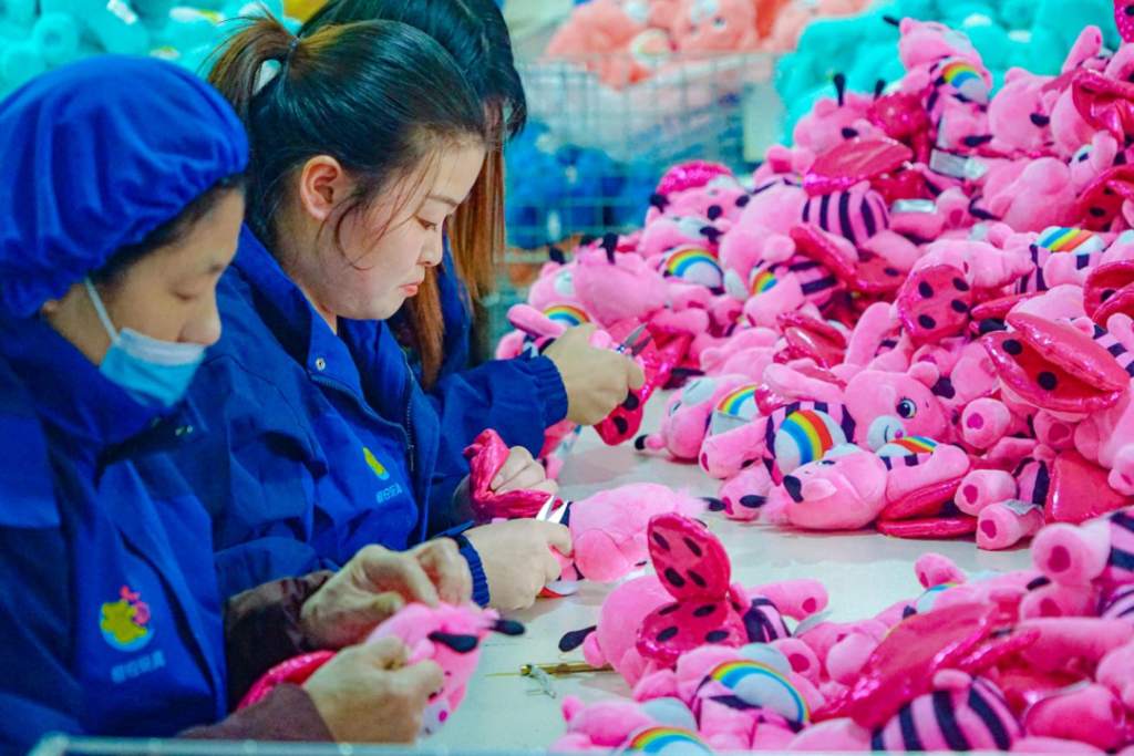 毛絨玩具是安康特色產(chǎn)業(yè)體系中的另一個(gè)重要代表。很多人可能不知道,目前安康已發(fā)展成為全國第四大毛絨玩具生產(chǎn)基地,獲評(píng)“中國毛絨玩具產(chǎn)業(yè)新都”。截至2025年底,安康全市累計(jì)建成毛絨玩具和紡織企業(yè)811家(點(diǎn)),吸納就業(yè)群眾超2.2萬人,實(shí)現(xiàn)年產(chǎn)值100.21億元。企業(yè)日產(chǎn)能達(dá)到150萬只,產(chǎn)品出口全球80多個(gè)國家和地區(qū)。