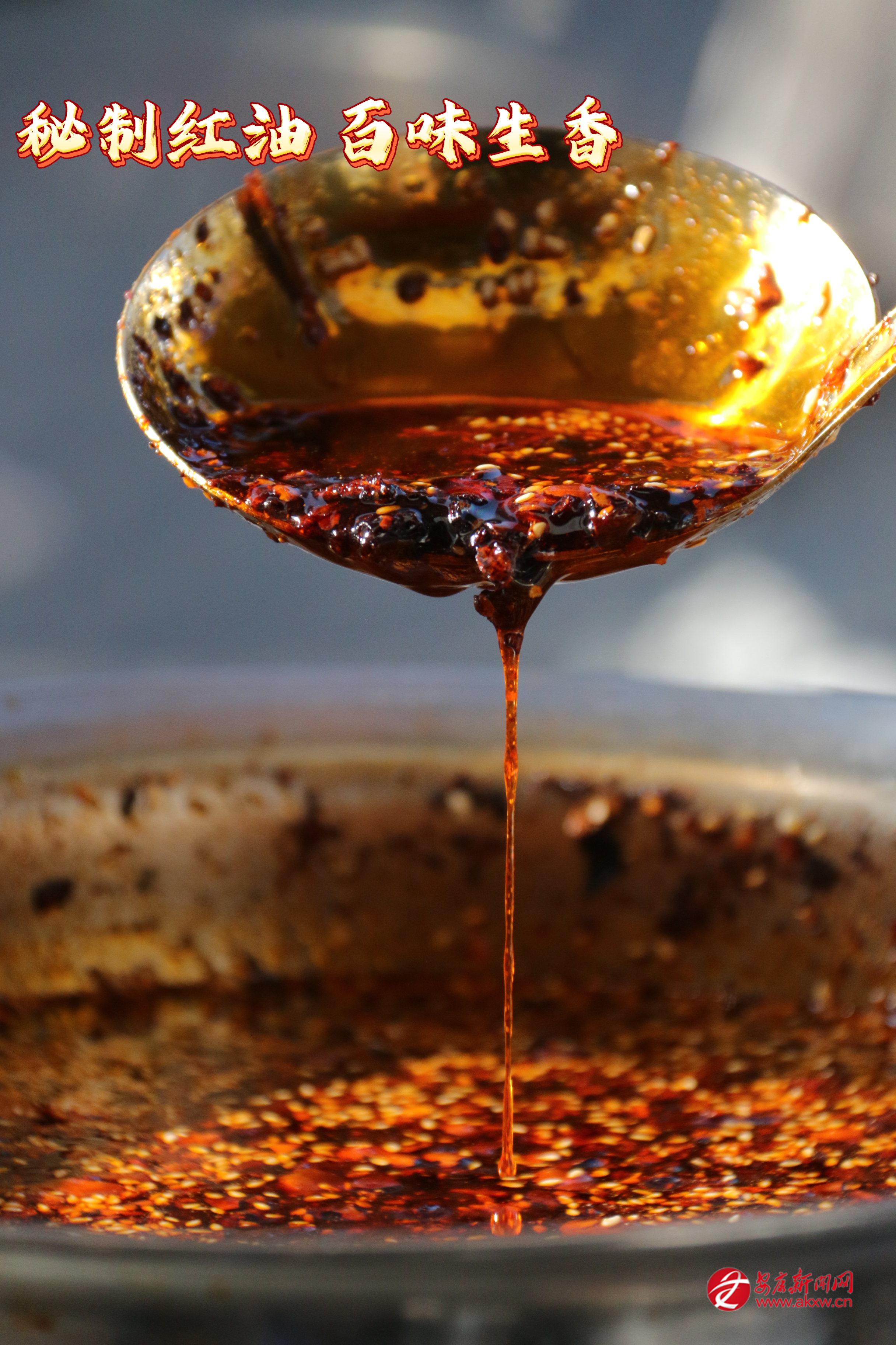安康的油潑辣子,是專門做過的。辣椒面兒要細(xì),要用本地的好辣椒。油要燒得滾燙,潑上去,嗞啦一聲,焦香就出來了。里頭還加各種香料——花椒、八角、草果、桂皮,各家有各家的秘方,不輕易告訴人。這一碗辣子,紅亮亮的,香氣濃得化不開。