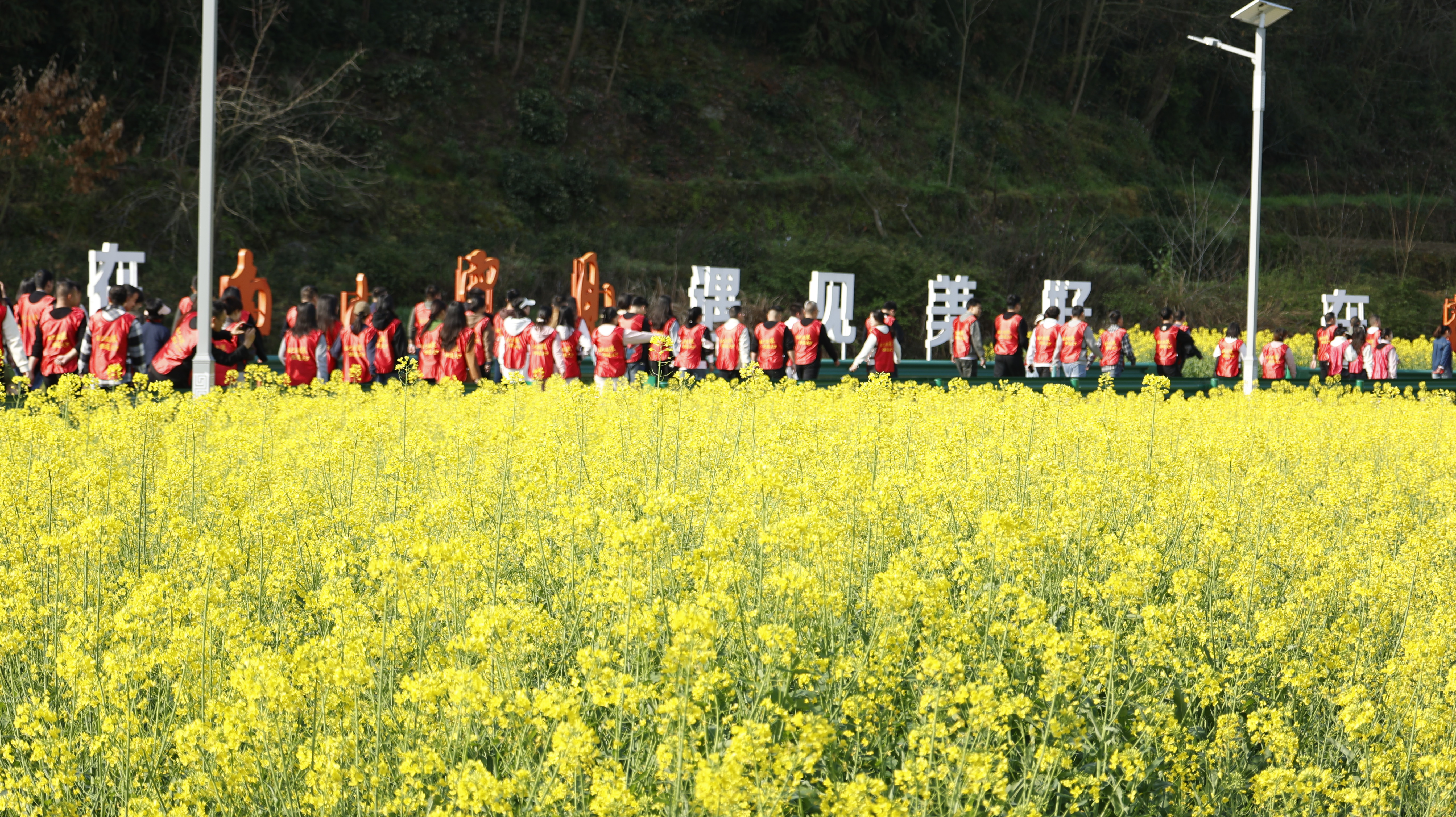 健步走結(jié)束后,啟動儀式正式拉開帷幕?,F(xiàn)場舉行了文旅推介,別出心裁地將安康民歌融入其中,悠揚的歌聲在花海間回蕩。隨后的歌曲演唱、毛絨玩具互動等環(huán)節(jié)輪番上演,整個活動現(xiàn)場以油菜花海為天然背景,陽光燦爛,春光明媚,歡聲笑語此起彼伏。活動最后,為健步走獲獎職工舉行了頒獎儀式。