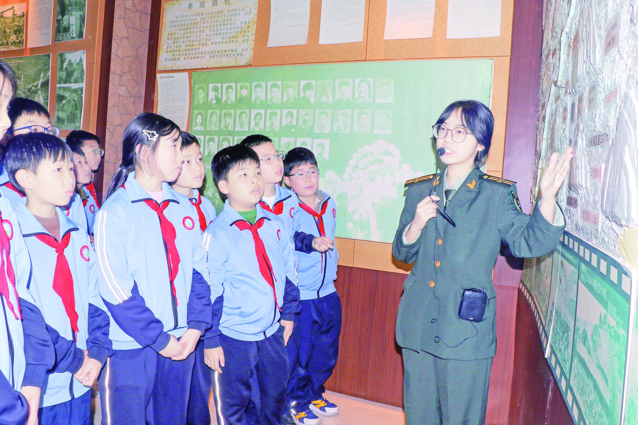 正在三線建設(shè)展覽館接受紅色教育的安康市第二小學(xué)四年級(jí)學(xué)生童顥森,聽完安康學(xué)院大一學(xué)生曹子然的講述后眼眶有些發(fā)紅地說:“以前只在課本里學(xué)過革命故事,今天聽姐姐講我們安康本地的英雄,真的很敬佩他們,我長(zhǎng)大后也要像他們一樣,為國家多做貢獻(xiàn)?!睅ш?duì)的學(xué)校少先隊(duì)輔導(dǎo)員陳婷婷在一旁感慨:“大學(xué)生講給小學(xué)生聽,年齡相差不大,孩子們更容易聽進(jìn)去。這樣的現(xiàn)場(chǎng)紅色教育確實(shí)很好?!?/p>