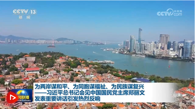 央視網(wǎng)消息(新聞聯(lián)播):4月10日,中共中央總書記習(xí)近平在北京會見鄭麗文主席率領(lǐng)的中國國民黨訪問團(tuán)并發(fā)表重要講話。習(xí)近平總書記著眼中華民族整體利益和長遠(yuǎn)發(fā)展,提出“堅(jiān)持以正確認(rèn)同促進(jìn)心靈契合、堅(jiān)持以和平發(fā)展守護(hù)共同家園、堅(jiān)持以交流融合增進(jìn)民生福祉、堅(jiān)持以團(tuán)結(jié)奮斗實(shí)現(xiàn)中華民族偉大復(fù)興”的重要論述,為推動兩岸關(guān)系發(fā)展進(jìn)一步指明了前進(jìn)方向、提供了重要指引。總書記的重要講話在海內(nèi)外引發(fā)熱烈反響。