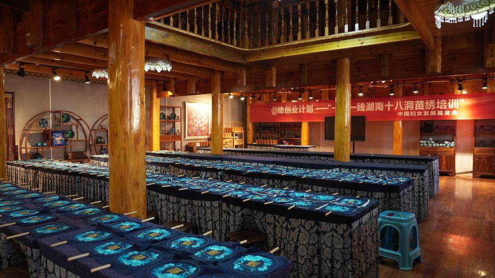 “十八洞片區(qū)苗繡鄉(xiāng)村振興示范基地”研學教室。新華社記者 戴斌 攝