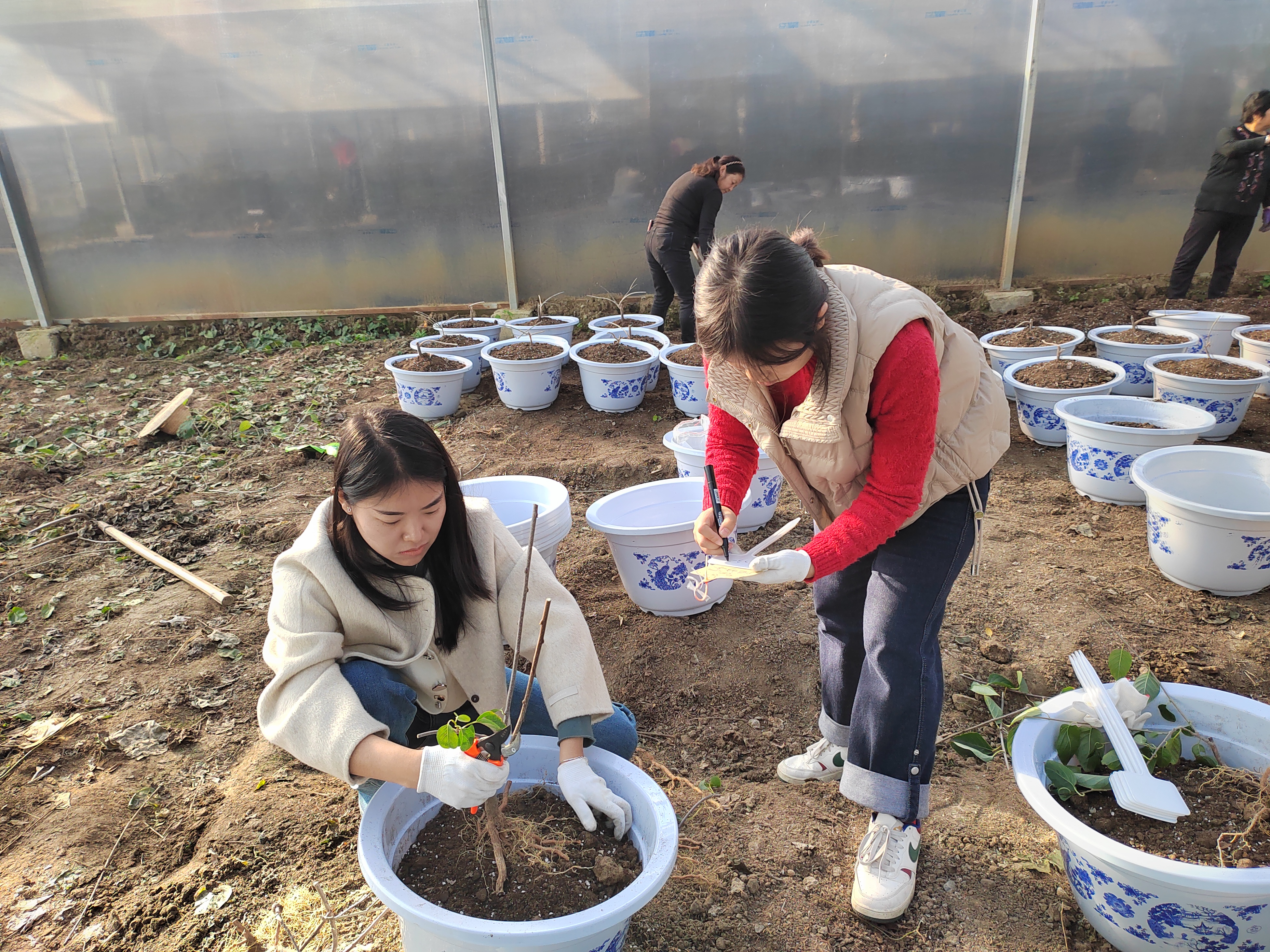 張文慧(左)與團(tuán)隊成員在試驗基地工作