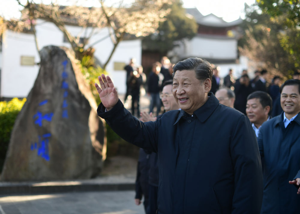 2020年1月19日下午,習近平在云南騰沖市和順古鎮(zhèn)考察調(diào)研時,向游客和村民揮手致意。