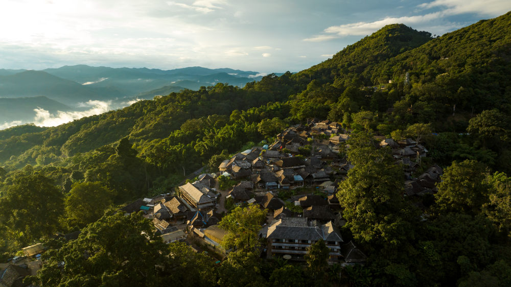 景邁山是云南普洱茶區(qū)最具標志意義的一座古茶山,其古茶林是世界上保存完整、面積較大、種植歷史悠久的人工栽培古茶林典型代表。2013年以來,當?shù)仃懤m(xù)實施村寨文物保護展示、消防防雷及古茶林監(jiān)測項目,優(yōu)先采用傳統(tǒng)工藝、傳統(tǒng)材料,延續(xù)傳統(tǒng)干欄式民居建筑結(jié)構(gòu)、特征和風貌,并進行適應(yīng)性改造和性能提升,在保護傳承遺產(chǎn)真實性、完整性的同時,推動遺產(chǎn)保護成果惠及當?shù)厝罕姟?023年9月,“普洱景邁山古茶林文化景觀”被列入《世界遺產(chǎn)名錄》,成為全球首個茶主題世界文化遺產(chǎn)。這是被山林與茶園環(huán)繞的云南景邁山翁基古寨一景(無人機照片,2023年9月18日攝)。