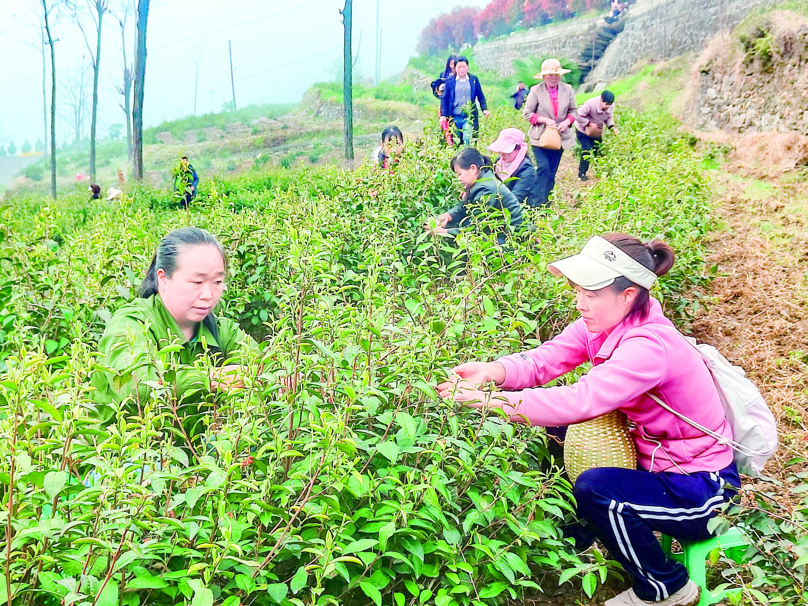 繁忙的采茶季,也為周邊村民搭建起家門(mén)口的增收平臺(tái)。進(jìn)入采茶期后,茶園日均用工50余人,高峰期超百人,村民人均日收入可達(dá)100元至150元?!拔壹译x得近,每年這個(gè)時(shí)候都來(lái)采茶,一季下來(lái)能掙幾千元。”正在采茶的村民說(shuō)。