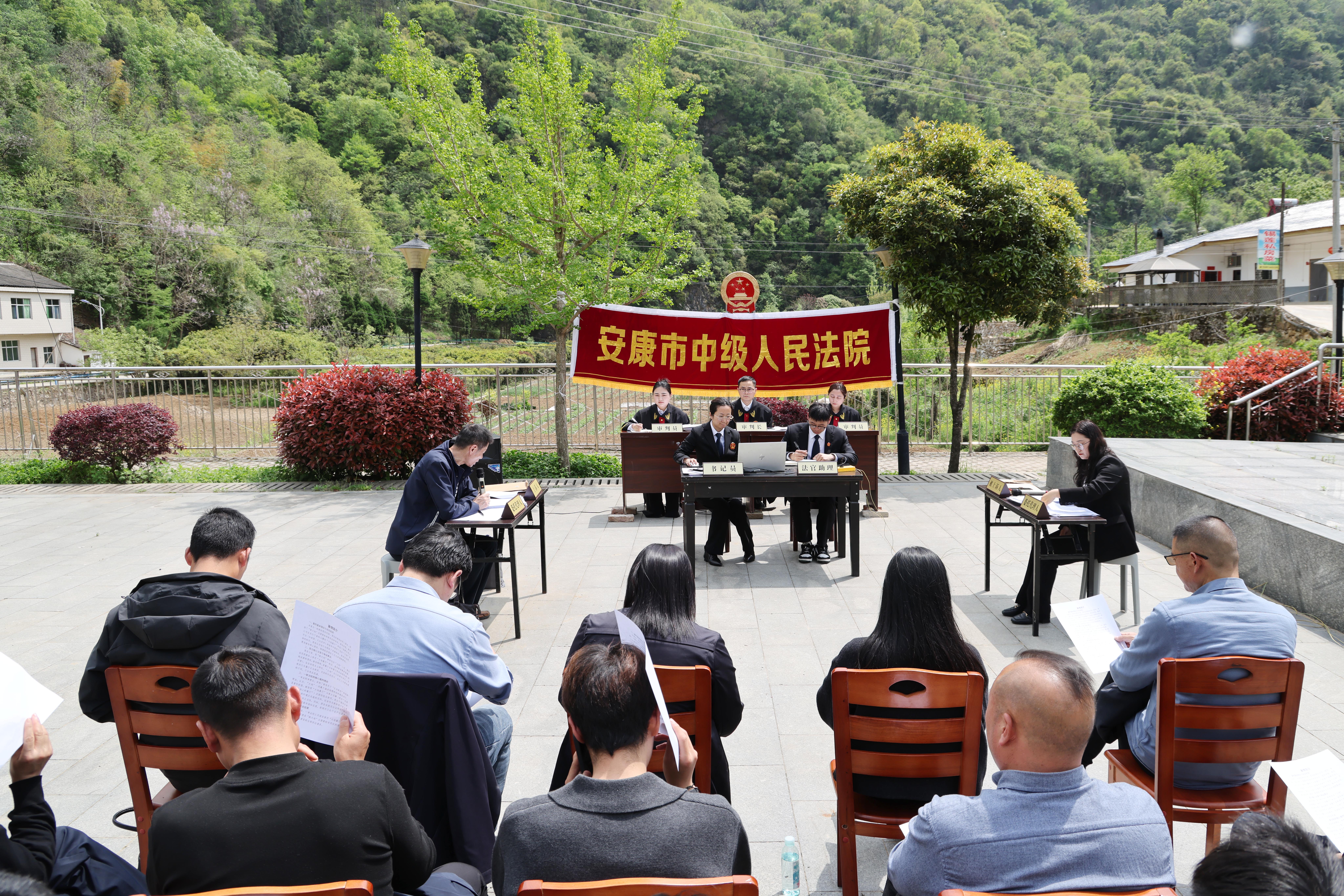 “現(xiàn)在開庭!”4月14日,隨著法槌落下,安康市中級(jí)人民法院受理的一起侵害商標(biāo)權(quán)糾紛案件庭審,在寧陜縣漁灣村院場(chǎng)拉開帷幕。
