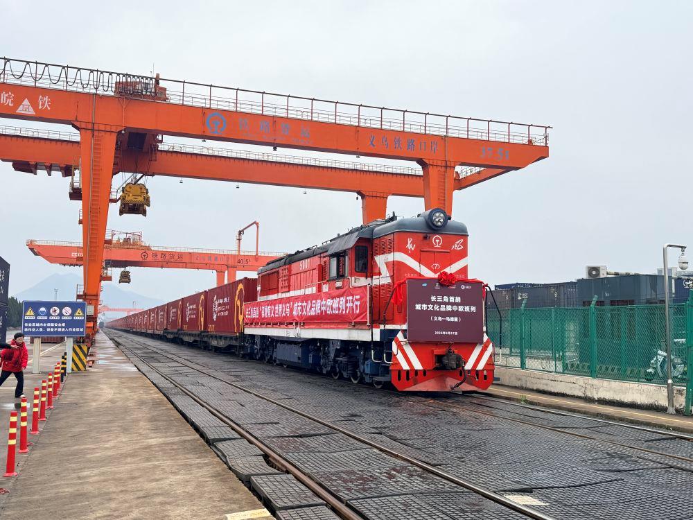 △2026年2月17日,義烏“有情有義 世界義烏”城市文化品牌中歐班列首次開行。
