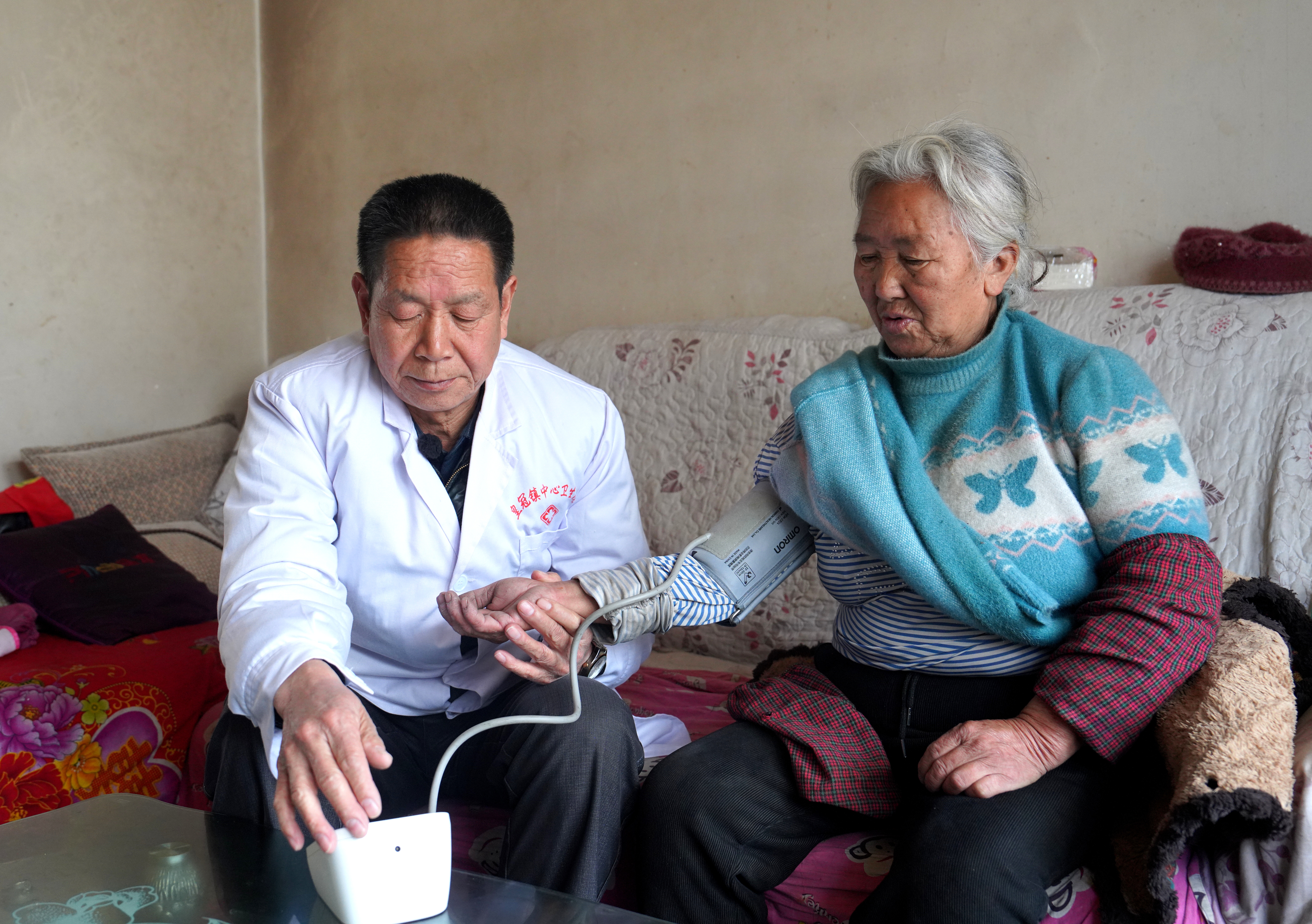 “口干不干?你要少吃泡菜,泡菜鹽多,臘肉和肥肉你也要少吃,血壓雖然靠吃藥降下來了,但飲食還是要注意?!痹趯庩兛h皇冠鎮(zhèn)興隆村趙友蓮家中,村醫(yī)李傳貴一邊為老人測量血壓,一邊仔細(xì)詢問近期身體狀況。