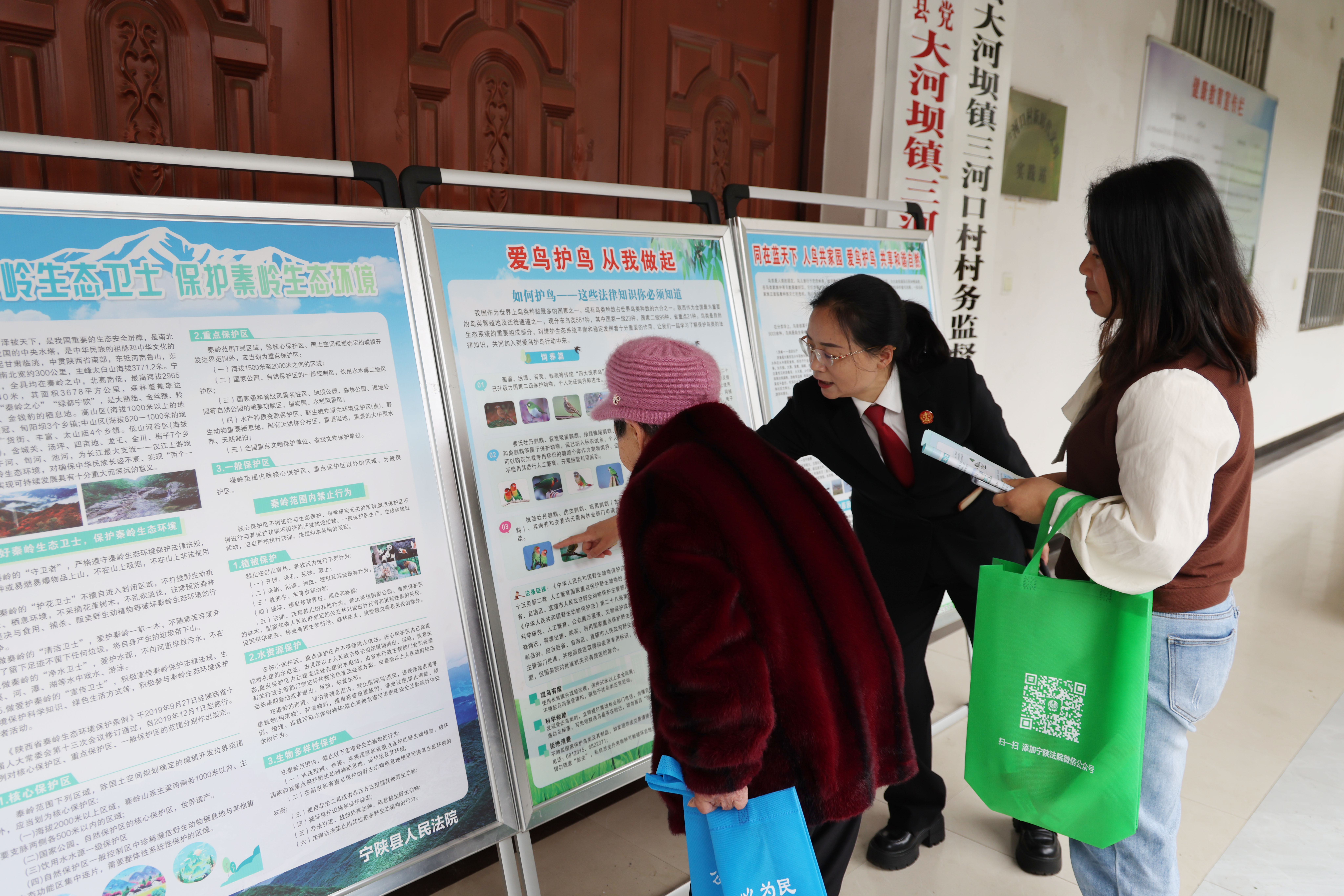 在佛坪縣大河壩鎮(zhèn)三河口村,兩地法院干警結合轄區(qū)群眾生產(chǎn)生活實際,用通俗易懂的語言,面向群眾精準解讀《中華人民共和國生態(tài)環(huán)境法典》《陜西省秦嶺生態(tài)環(huán)境保護條例》等核心法律法規(guī)。同時,聚焦非法捕撈水產(chǎn)品、違規(guī)穿越秦嶺核心保護區(qū)、破壞水源地環(huán)境等頻發(fā)違法情形,依托本地典型案例,深入淺出剖析各類生態(tài)環(huán)境違法行為的法律責任與生態(tài)危害,以“身邊案例”警醒“身邊群眾”,清晰劃定秦嶺生態(tài)保護法律紅線,引導群眾自覺遵守環(huán)保法律法規(guī),主動抵制各類破壞秦嶺生態(tài)的違法違規(guī)行為。活動中,同步設置趣味環(huán)保知識有獎問答環(huán)節(jié)。群眾踴躍舉手、積極互動,在輕松鮮活的氛圍中加深生態(tài)保護知識記憶,進一步夯實全民共同守護秦嶺、保護水源地的思想根基,切實提升群眾生態(tài)保護意識、法治觀念和行動自覺。